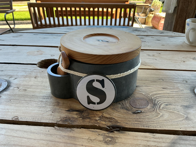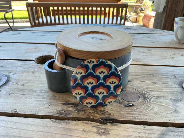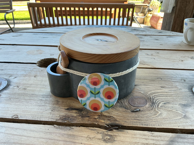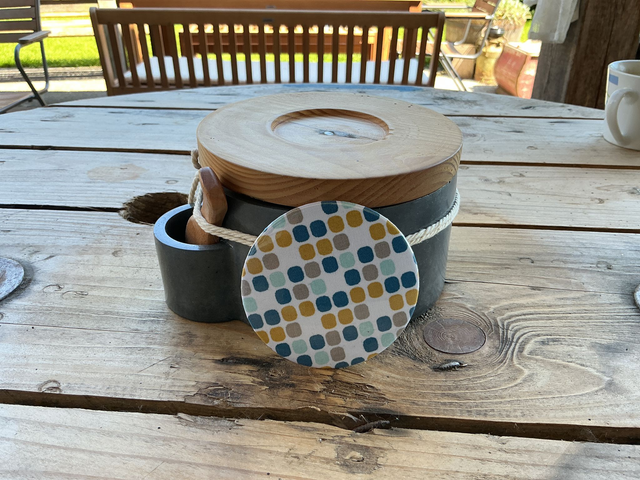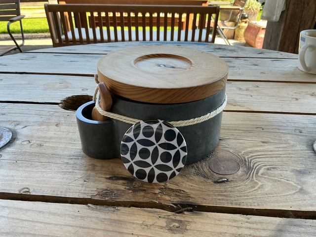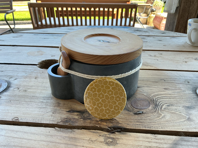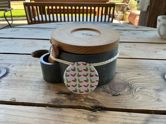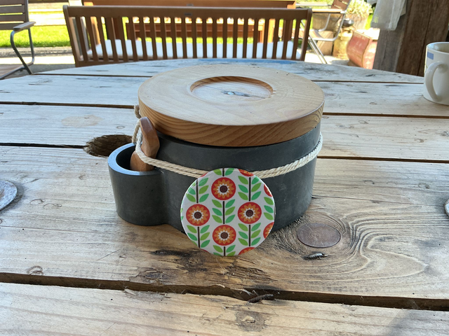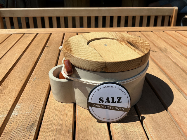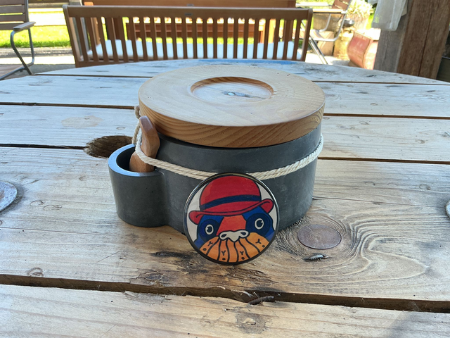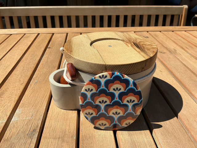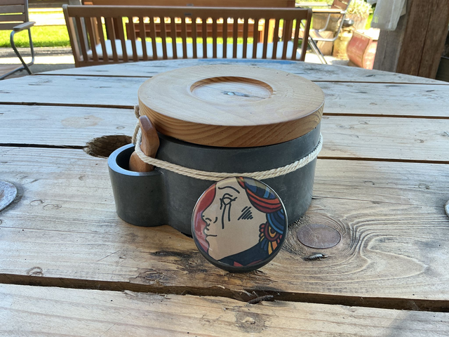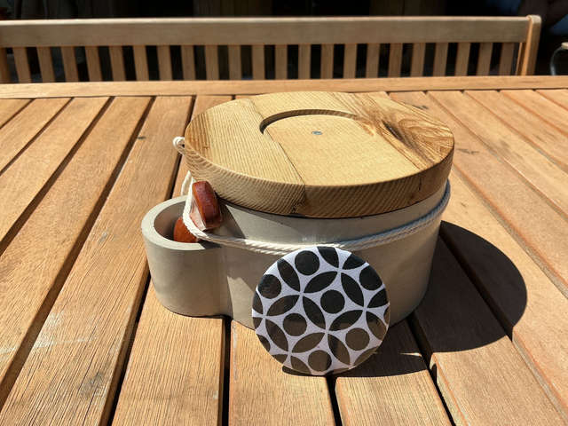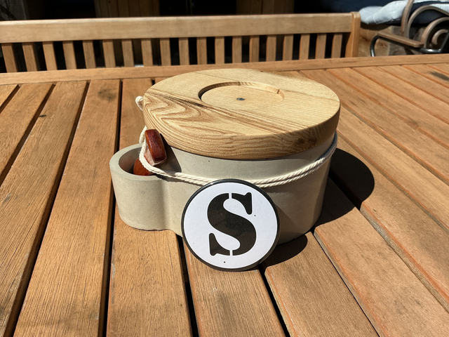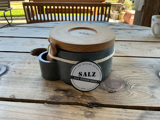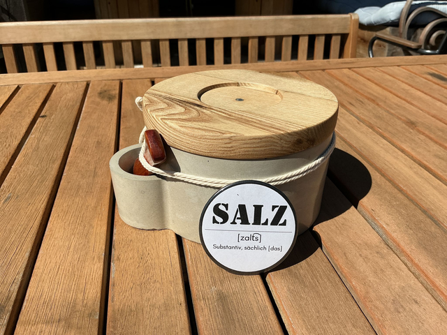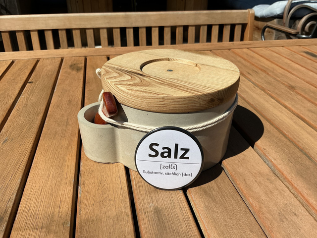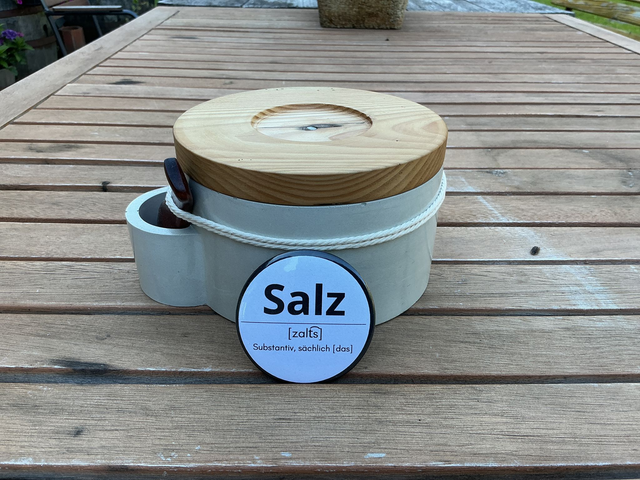 Für den Behälter verwenden wir einen hochwertigen Design-Beton, der durch eine spezielle Oberflächenbehandlung lebensmittelecht (für Lebensmittel geeignet) und schmutzabweisend versiegelt wurde.