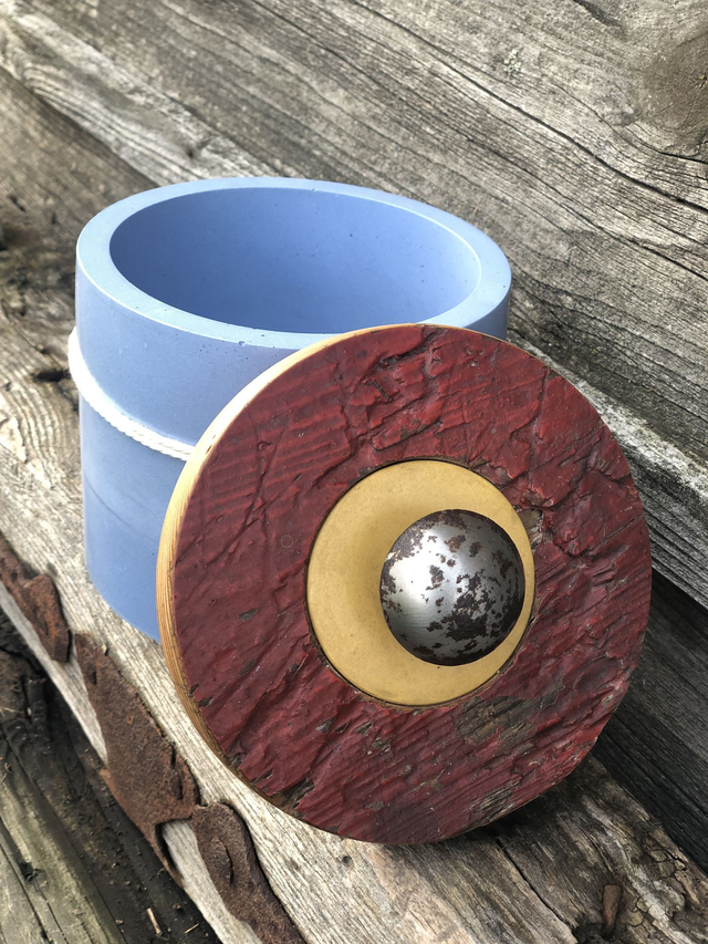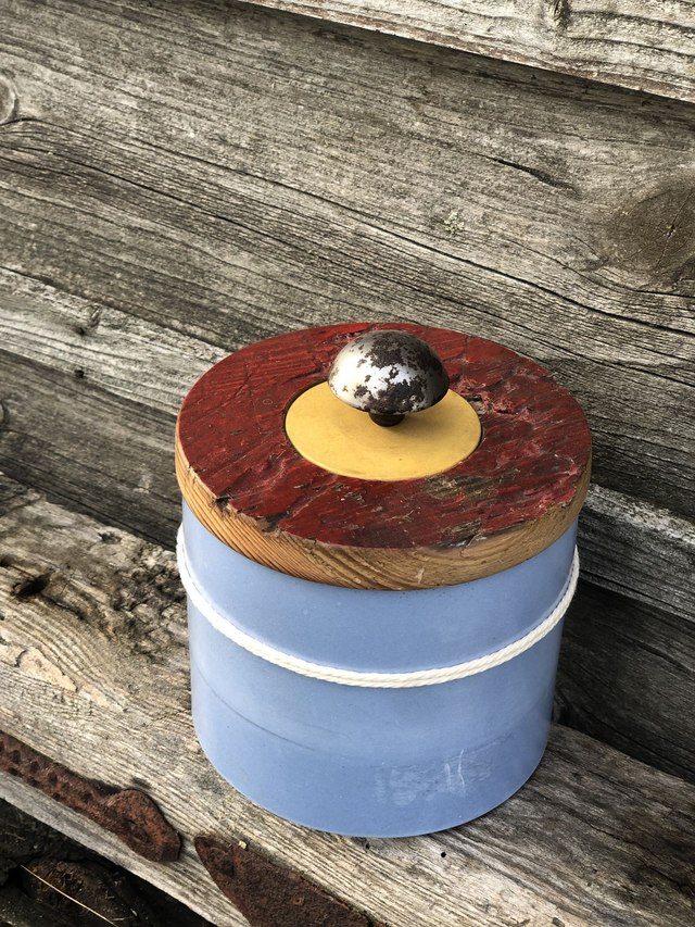 Handgefertigt aus Beton, ergänzt durch Upcycling-Materialien, vereint dieses Produkt Stil und Funktionalität auf besondere Weise.