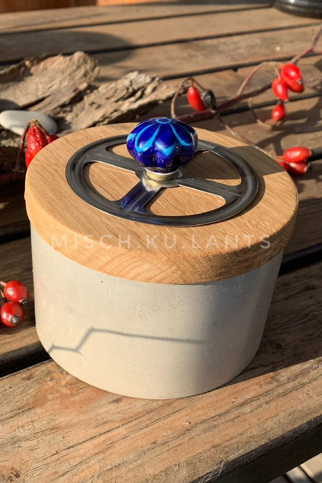 Handgefertigt aus Beton, ergänzt durch Upcycling-Materialien, vereint dieses Produkt Stil und Funktionalität auf besondere Weise.