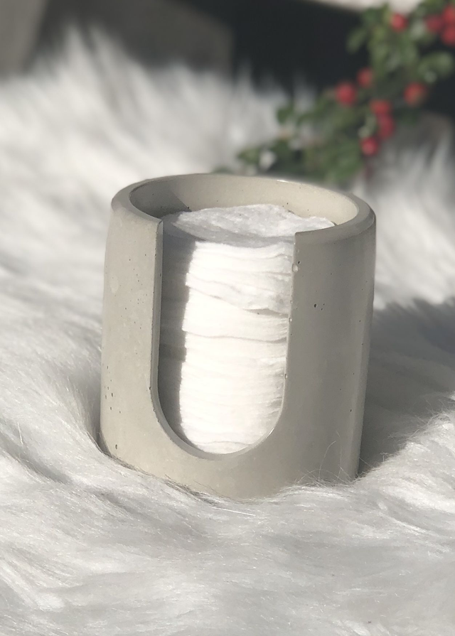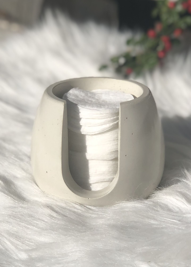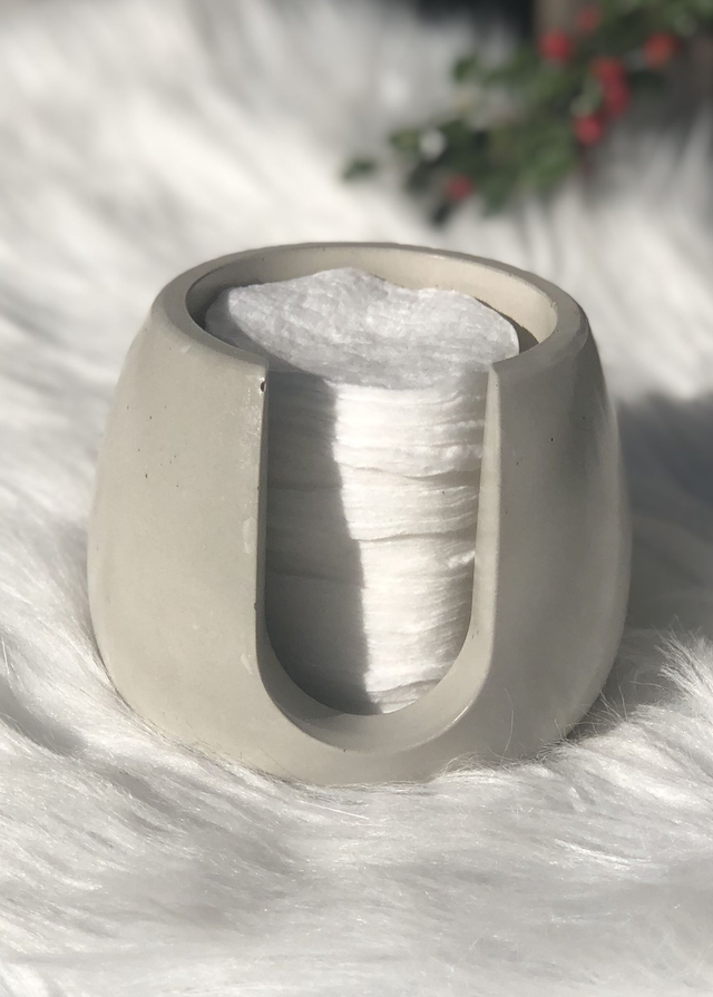 Unser handgefertigter Wattepadspender aus Beton verbindet minimalistisches Design mit praktischer Funktionalität. Ob im Badezimmer, auf dem Schminktisch oder im Spa-Bereich – er sorgt für stilvolle Aufbewahrung deiner Wattepads und ist gleichzeitig ein modernes Deko-Element.